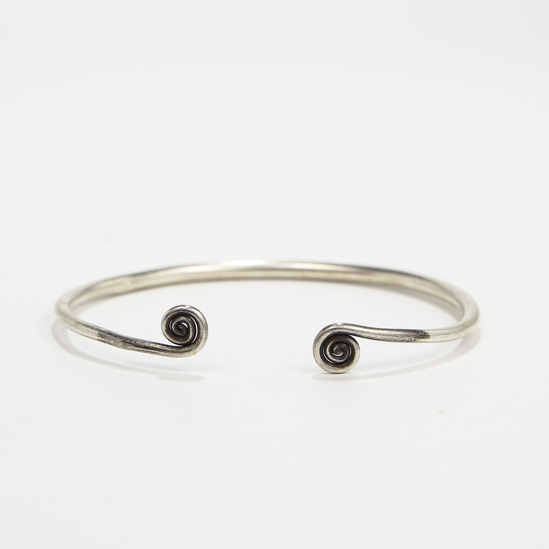 A minimal fine-silver bangle finished with two hand-formed spiral ends — the ancient symbol of evolution and forward movement. It’s one of the oldest marks in human history, used to represent growth, cycles, and personal transformation.