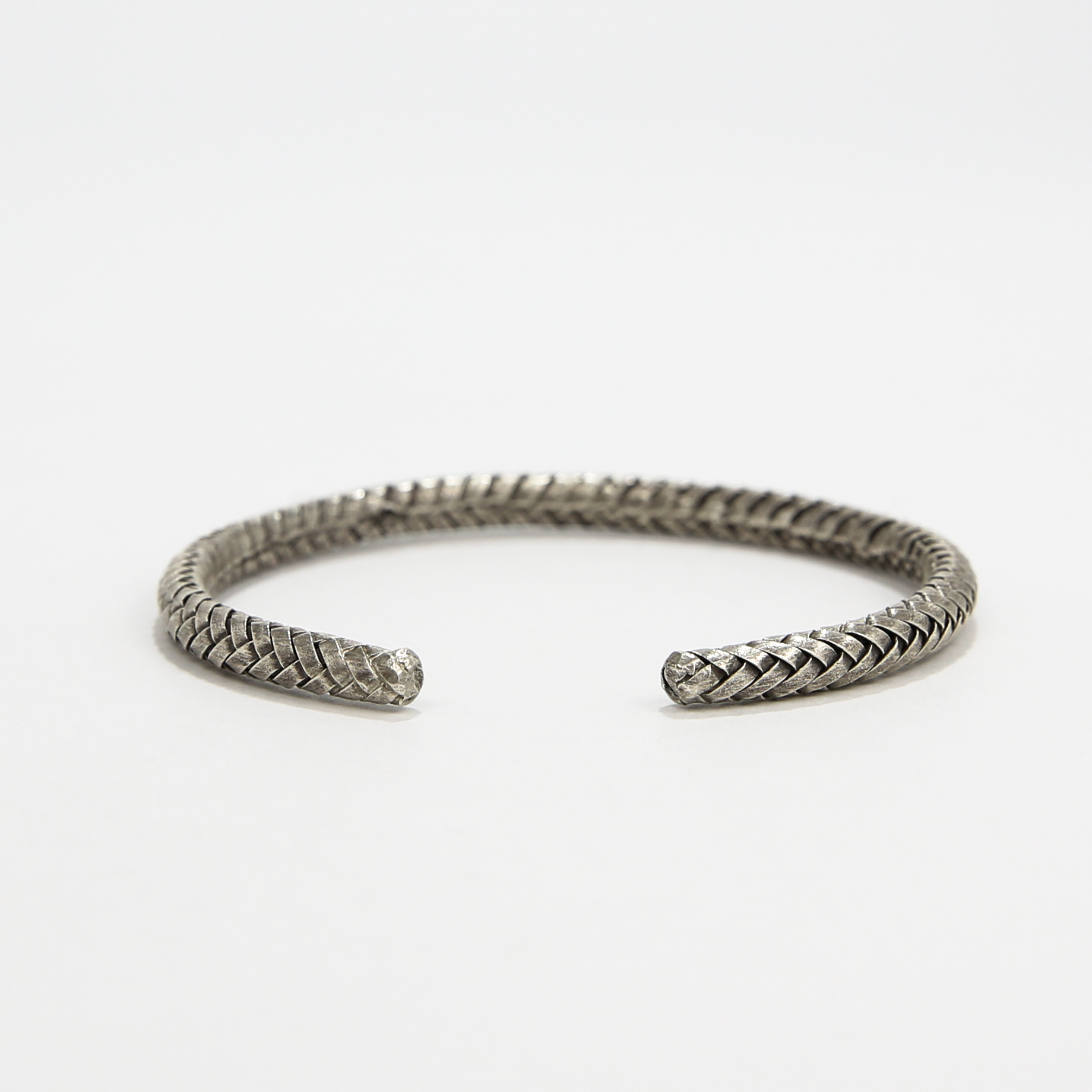 A tight, meticulous woven pattern in genuine fine silver — the signature texture of the Imperia Collection. This bangle is all hand-work: strand over strand, pressure, rhythm, intention. No machines. No shortcuts.